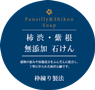 このような枠練り法のメリットを生かして、植物の恵みや保湿成分をふんだんに配合したパンシリー柔肌プラスができました。さらに枠練り石鹸にはふやけにくい、泡立ちがいい等のメリットもあります。 さらに、合成香料・合成着色料・石油系界面活性剤・防腐剤を使用しない無添加仕立てとなっています。 |